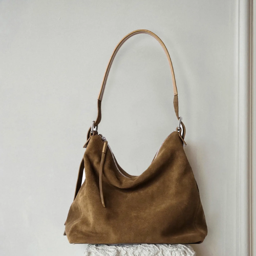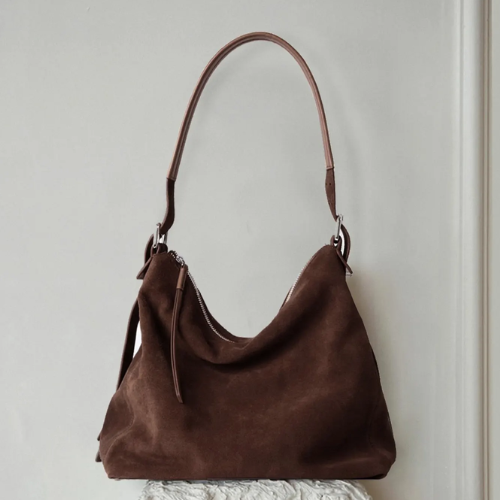 Product name:Dark Brown Adjustable Strap Suede Tote Bag