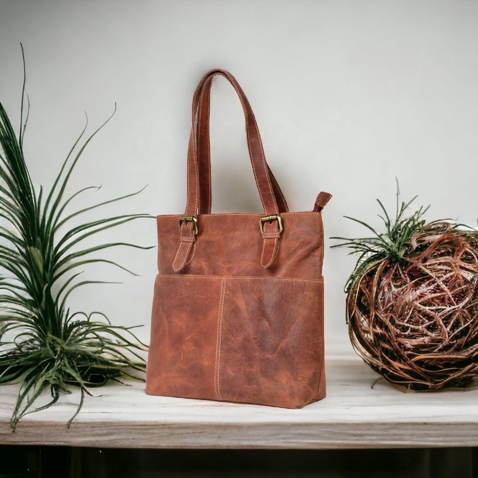Dark Brown Distressed Leather Tote Bag for Women Large Capacity Travel Office Handbag OEM Fashionable Work Bag