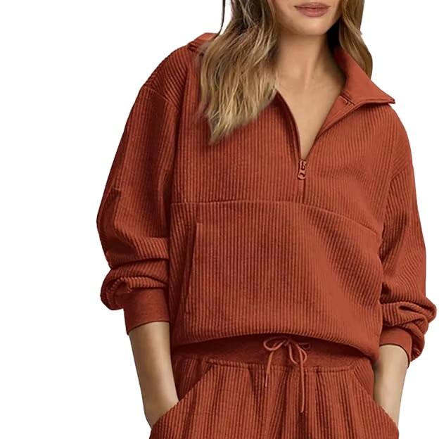 Dark Brown Turtleneck Zipper-up Crewneck Sweatshirt and Jogger Set Oversized French Terry Sweatsuits Short OEM Hoodies for Woman