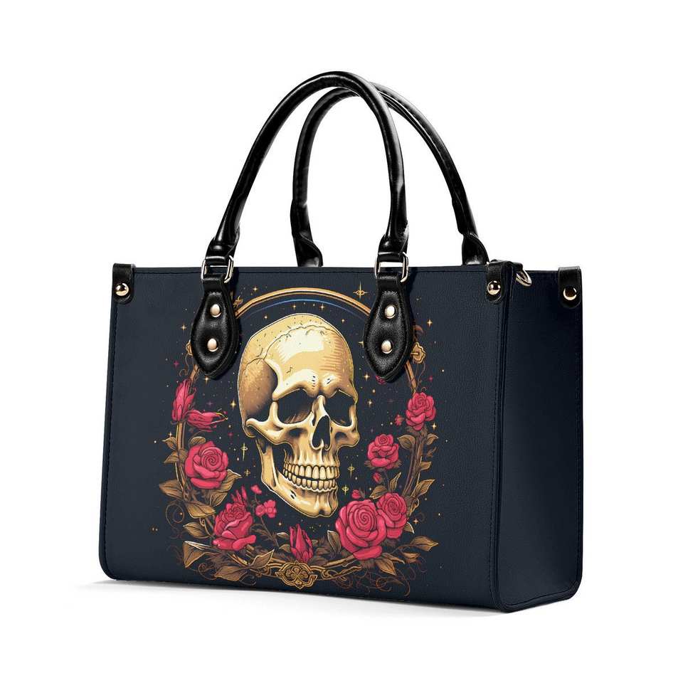 Dark Gothic Skull Pattern PU Leather Handbag for Women Dropship POD Luxury Lady Tote Bag