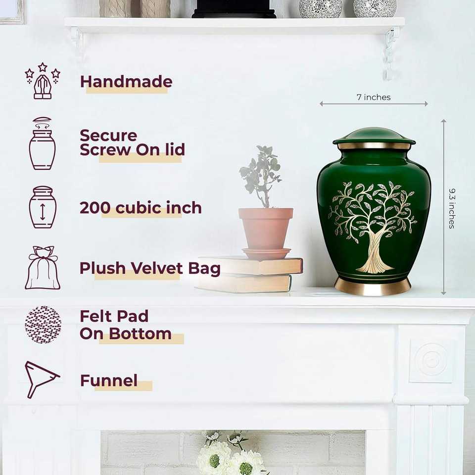 Dark Green Elegant Pet Casket & Urn for Male & Female Adults Large Decorative Cremation Urn for Funeral Use