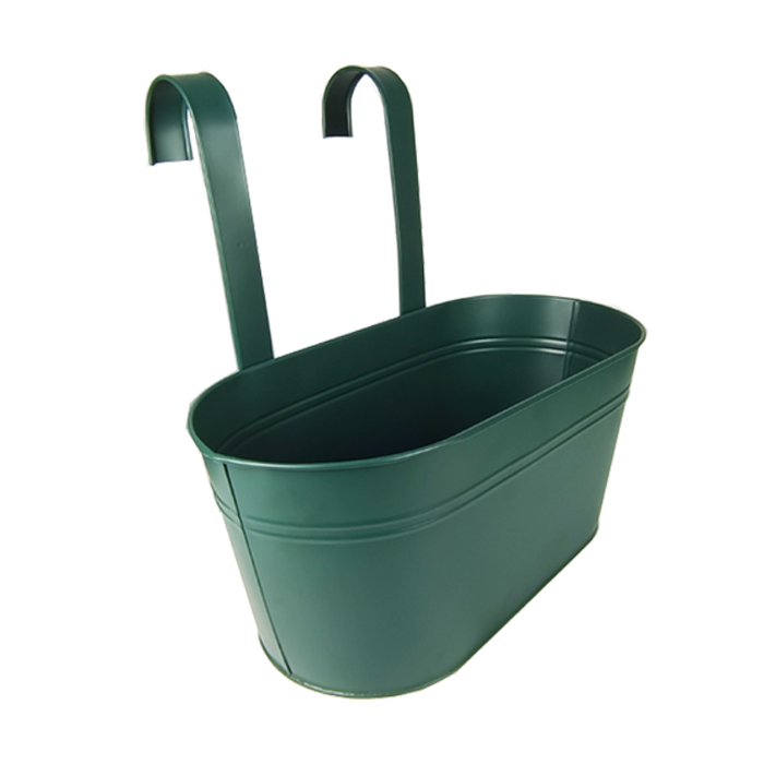 Dark Green Galvanized Metal Hanging Flower Pot Stand Tray Eco-Friendly 3 Gallons for Railing Balcony Wall Decorations Nursery