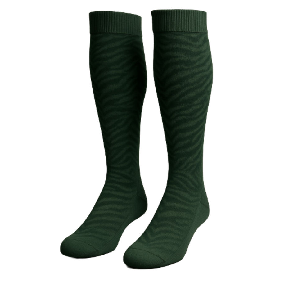 Dark Green Knee High Athletic Socks with Jacquard Zebra Pattern for Fashion Sports Uniform