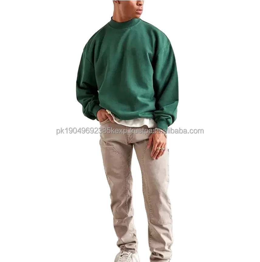Dark Green Thick Rib High Collar sweatshirts distressed print logo vintage washed mock neck sweatshirt hoodies for men