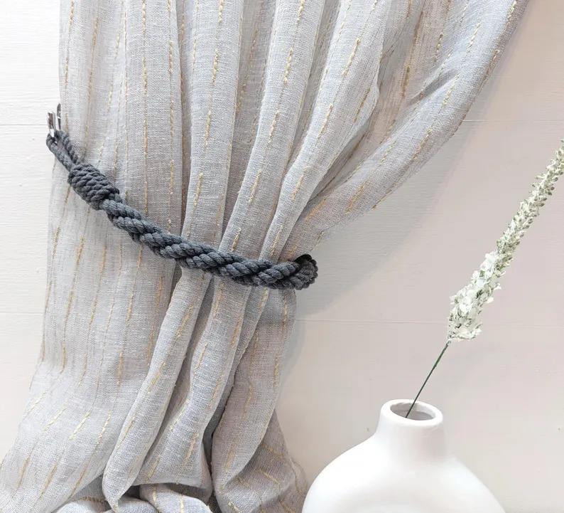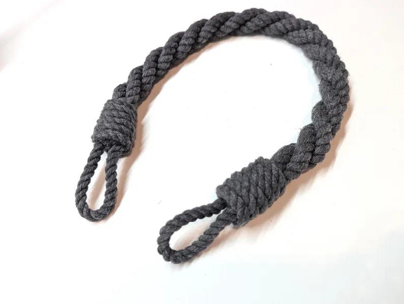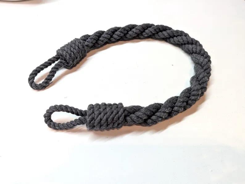 Dark Grey Cotton Rope Curtain Tieback Handmade Window Holdback
