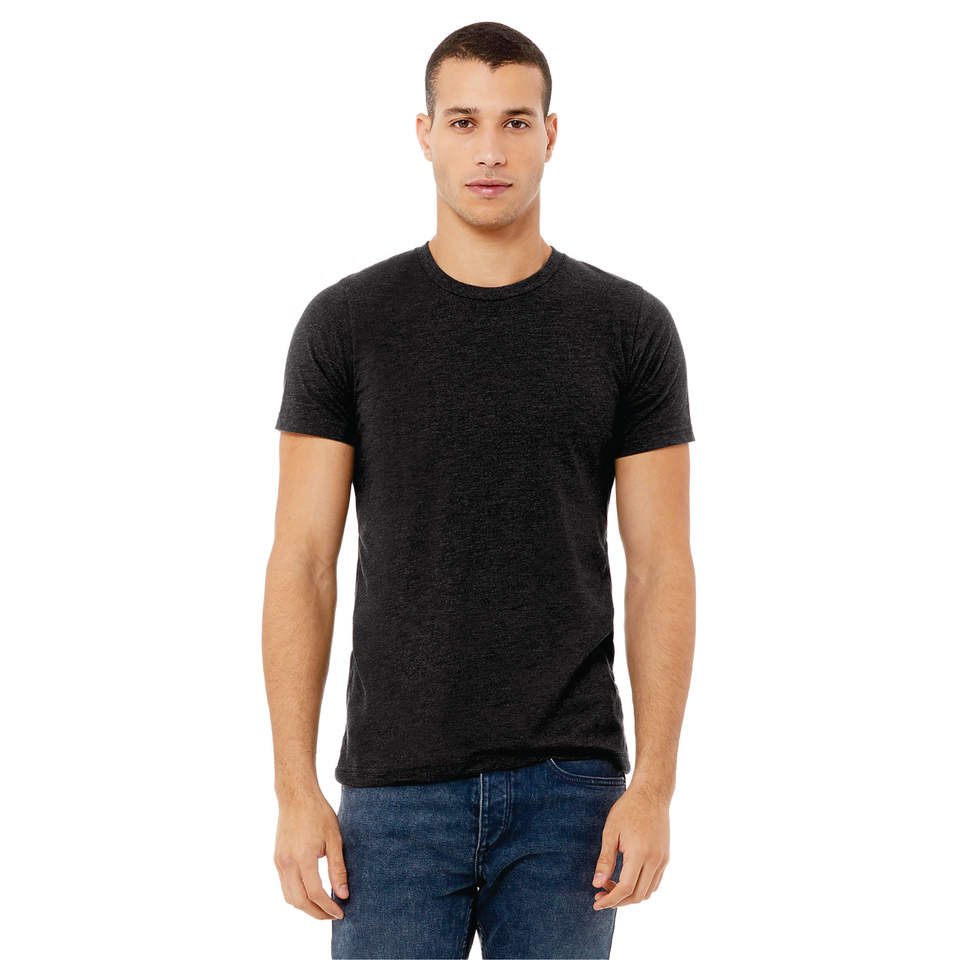 Dark Grey Heather Unisex CVC Short Sleeve T-Shirt: 52% Airlume Combed and Ring Spun Cotton, 48% Poly, 32 Singles, 4.2 oz