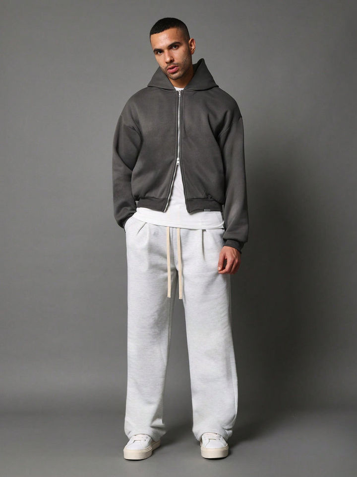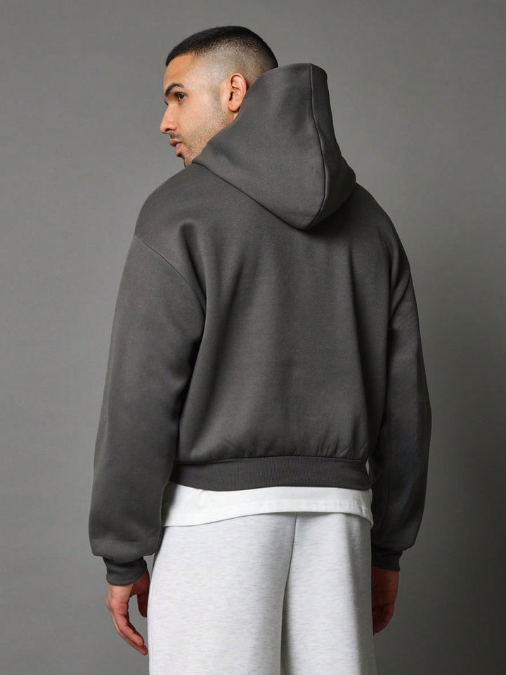 Dark Grey Oversized Cropped Heavy Thick Zip up Hoodies Men Custom Logo Drop Shoulder Double Slider Cheap Bulk Thermal