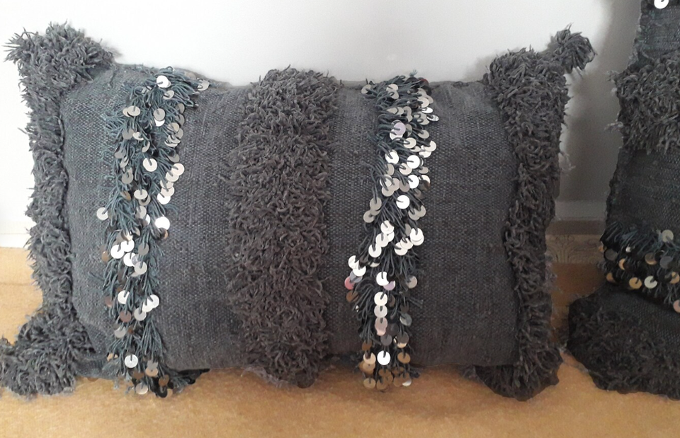 Mode:Dark Grey Sequined Wedding Handira Cushion Covers