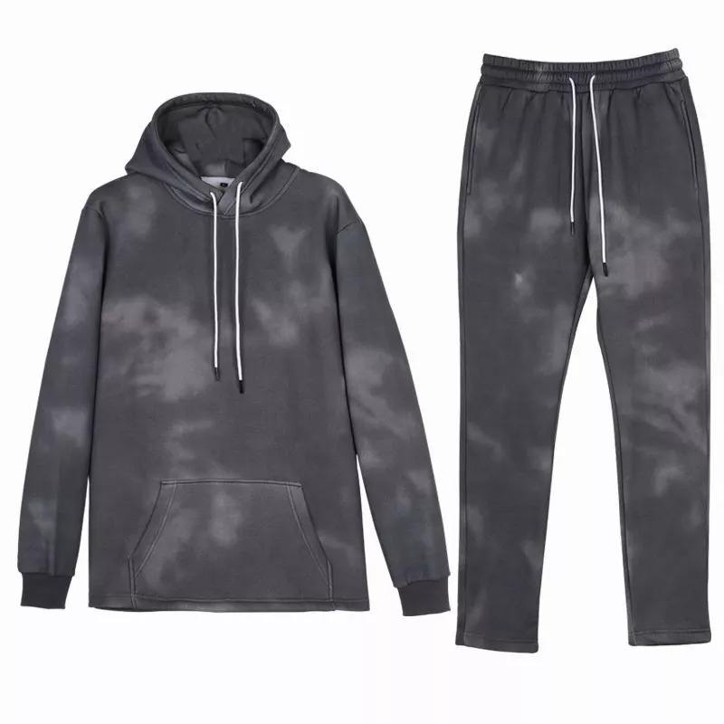 Dark Grey Tie-dye Ink Sweat Hoodie Trousers Skinny Winter Breathable Eco-Friendly Polyester/Cotton Tracksuit for Men