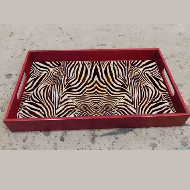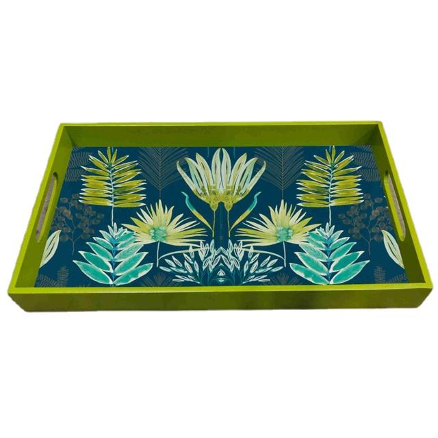 Dark Peacock Blue Wooden Serving Tray with Floral Theme for Party Wedding Home Decor Food & Drink Serving
