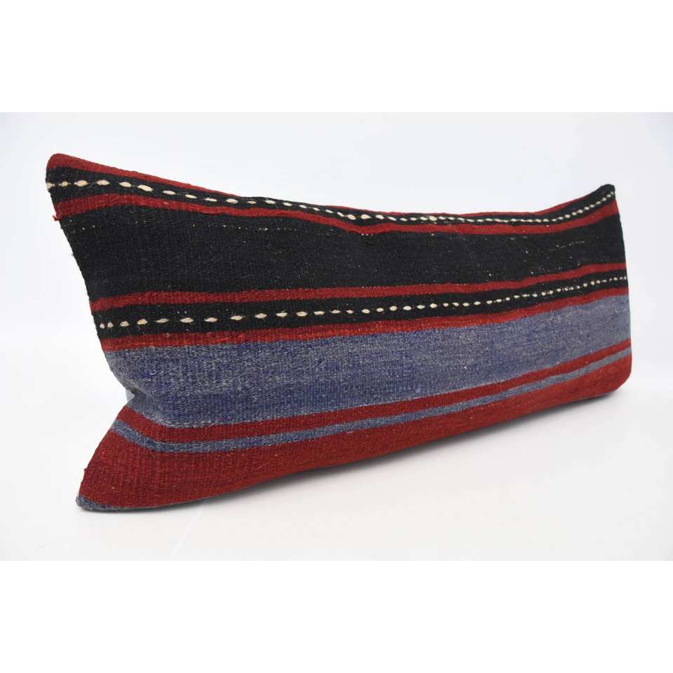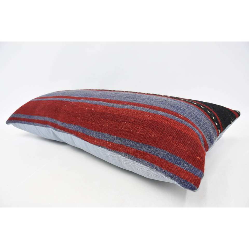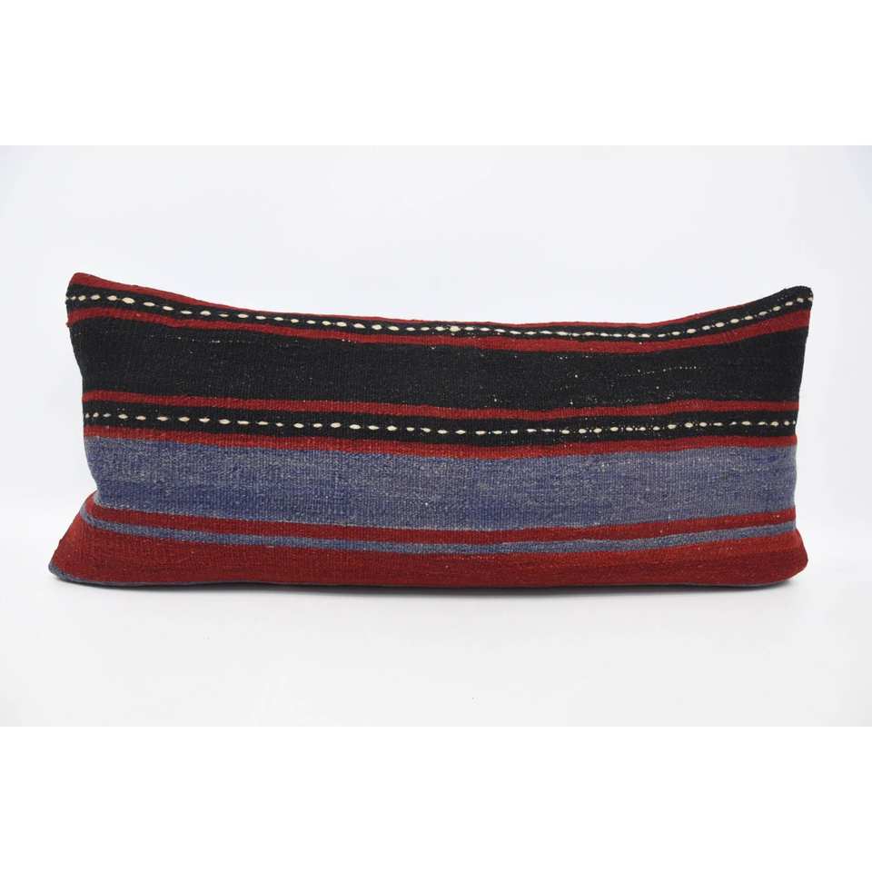 Dark Red Vintage Floral Striped Bohemian Wool Pillow Luxury 16x36 Inch Decorative Accent for Living Room Woven 18x18 Square