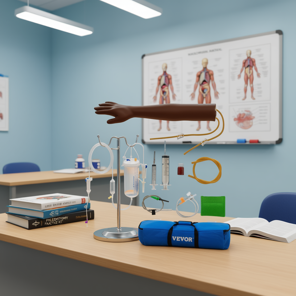 VEVOR Phlebotomy Practice Kit 14 Pcs Dark Skin IV Venipuncture Arm With Infusion Stand For Medical Students Nursing Education