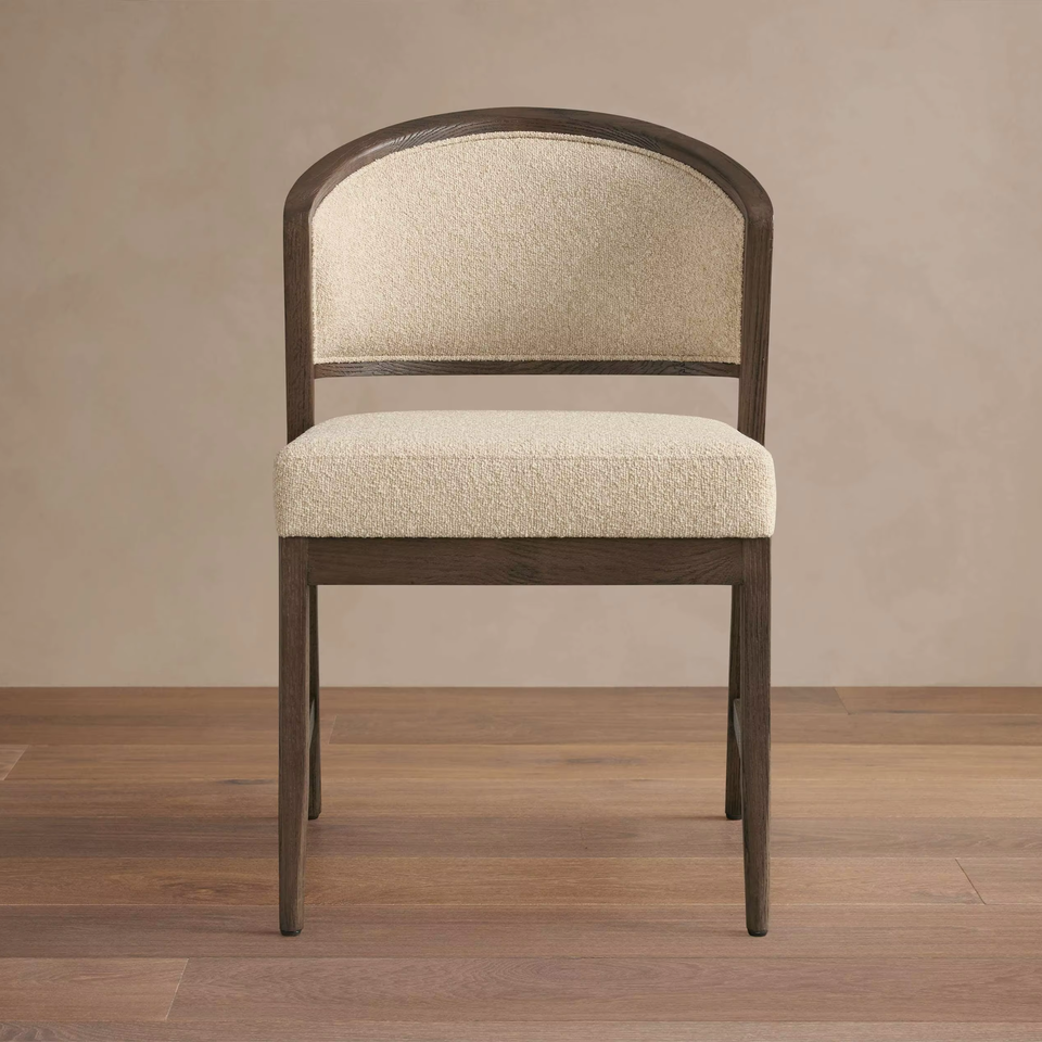 Contemporary French Chair with High Back and Fabric Seat Solid Light Farmhouse Design for Dining and Living Room Use
