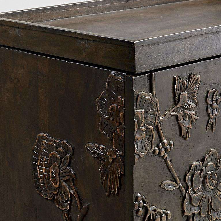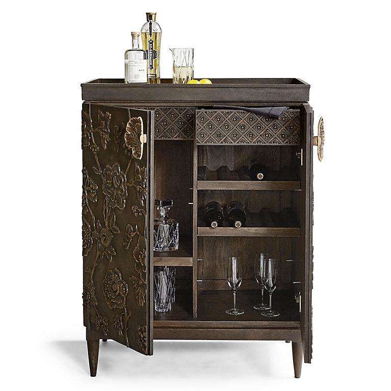 Dark Wood Modular Living Room Cabinet with Embossed Floral Door Designs Modern Rustic Style for Wine Spirits Wholesale Available
