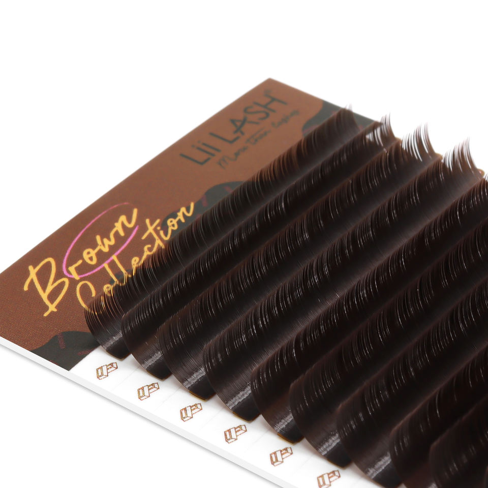 Dark brown easy fan lashes handmade eyelash extension russian volume brown mink lashes wholesale fluffy