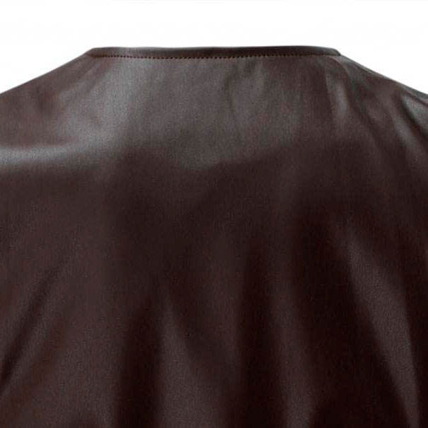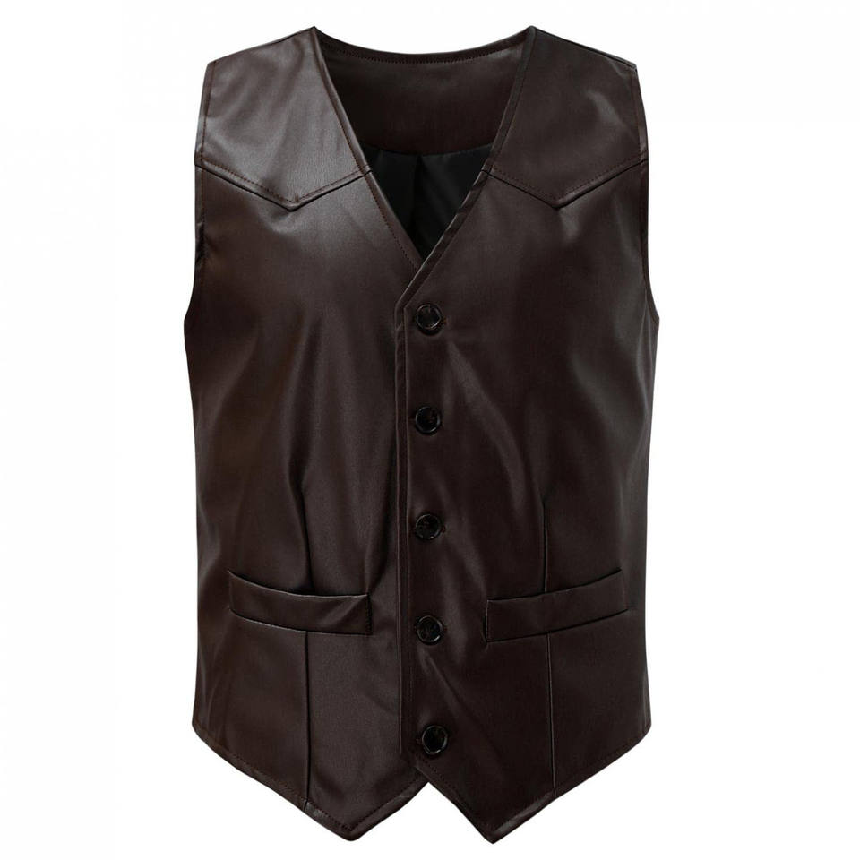 Dark Brown 100% Polyester O-Neck Breathable Men's Waistcoat Three Button Front Closure Two Flap Pockets Seam Detailing Cow