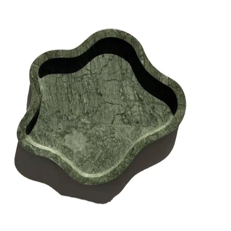 Dark green marble blob tray decorative catchall dish for keys jewellery bedside table sculptural organic stone platter modern