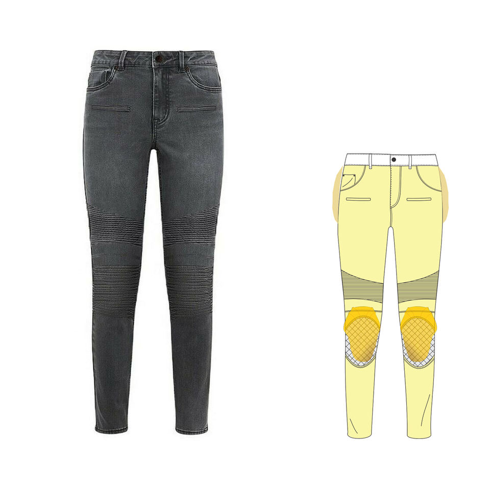Dark grey black womens motorcycle jeans For womens with Kevlar lining and removable CE armor motorcycle kevlar jeans
