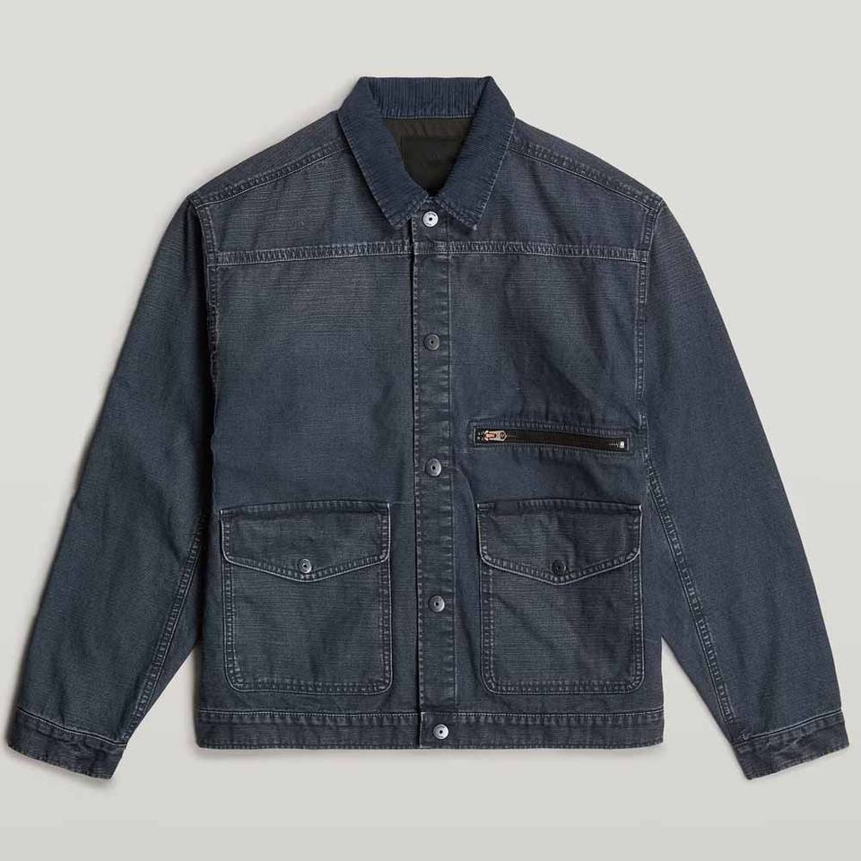 Dark navy denim jacket for men casual custom outerwear button up breathable seamless fashion coat gym sport workout streetwear