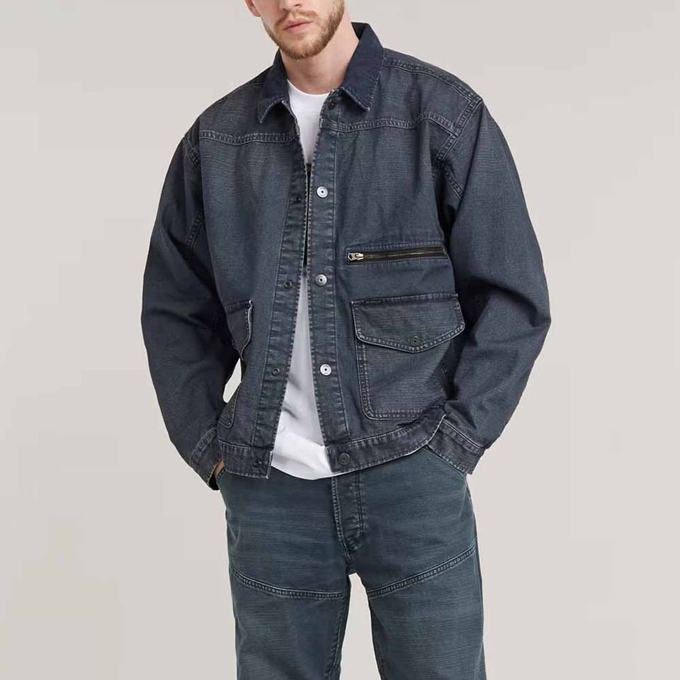 Dark navy denim jacket for men casual custom outerwear button up breathable seamless fashion coat gym sport workout streetwear