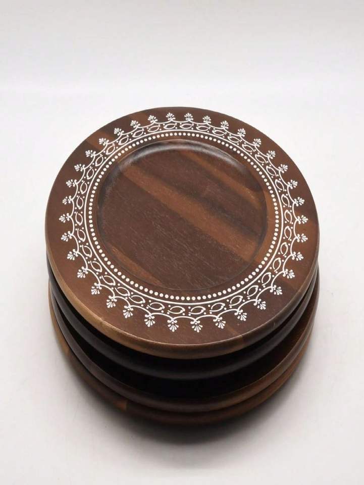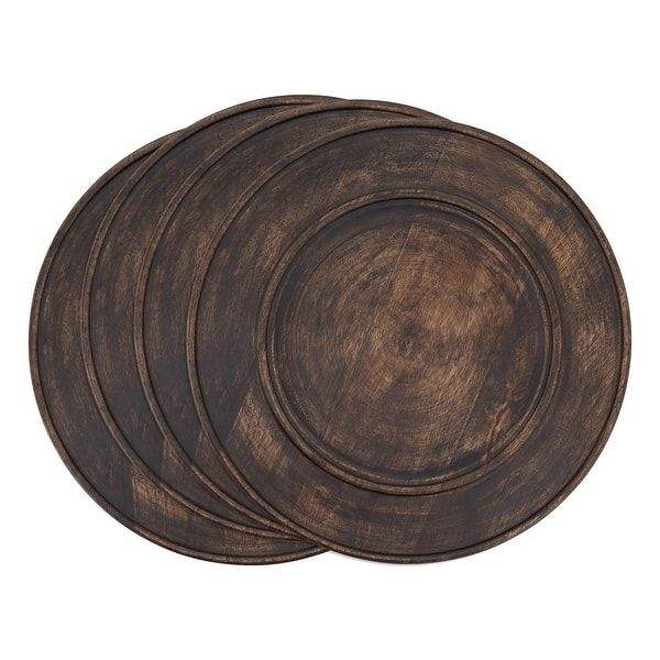 Dark wood charger plate set rustic round wooden dinner plate brown table charger rustic placemat for restaurant hotel catering