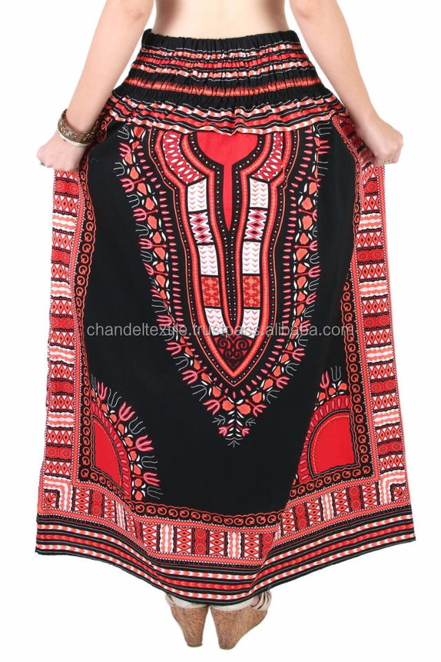 Dashiki African Skirt Cotton Mexican Hippie Tribal Ethic Boho Black Cotton Mexican Hippie Shirt Wrap with Elastic Skirt African