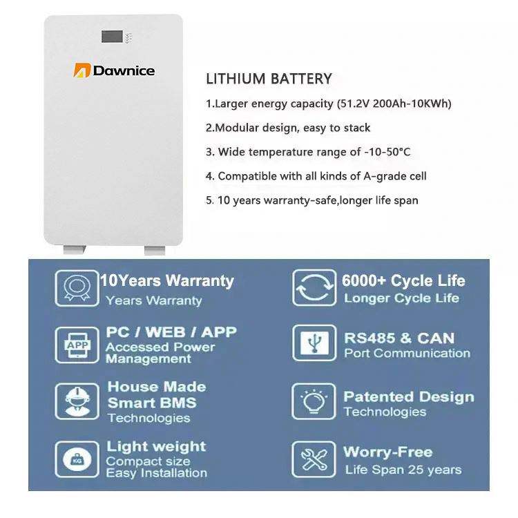 Dawnice Wall-mounted 15kwh 300AH Lifepo4 Battery 10kwh 200ah Solar Home Battery Pack for Solar Energy Storage Power Battery