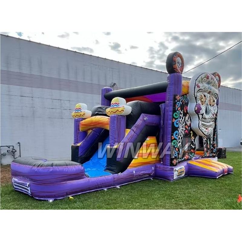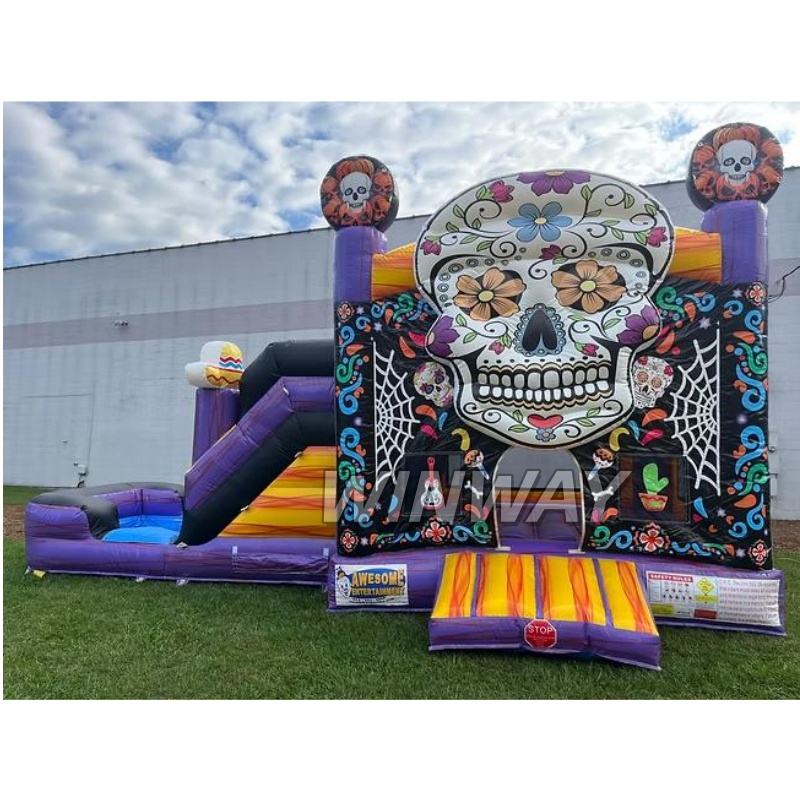 Day of the Dead Sugar Skull Inflatable Castle for Kids Colorful Slide Included for Rent or Personal Use