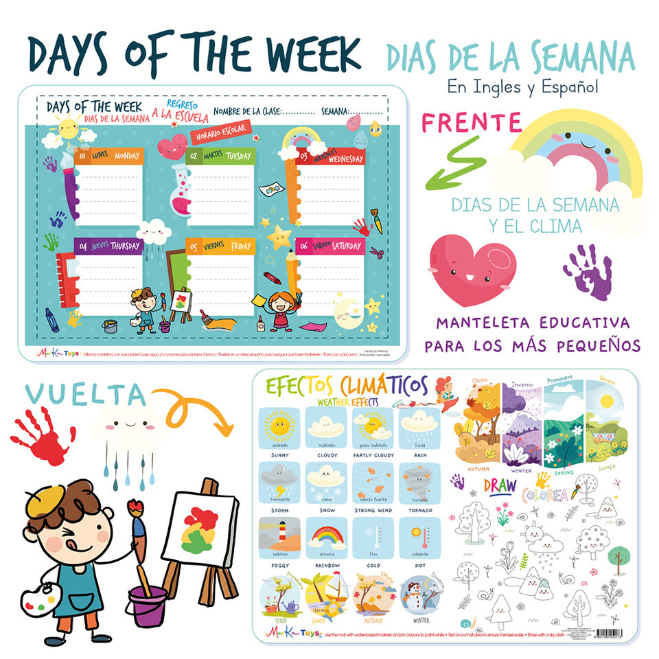 Days of the Week and Weather Educational Placemat for Toddlers White Days of the Week