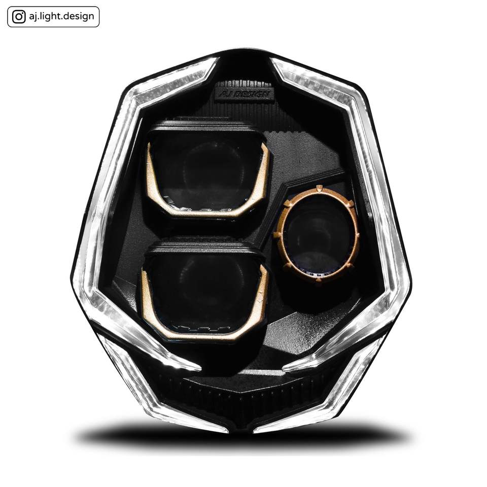 Daytime Running Light LED Multifunctional Motorcycle 3-Eye Demon Eye Headlight AJMB-HD-3YY AJLIGHT DESIGN 62W/69W High/Low Beam