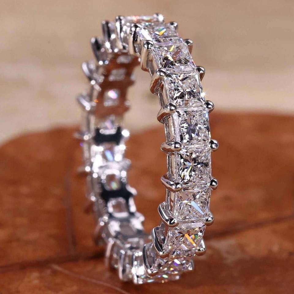 14k 18k Solid Gold Eternity Wedding Band Ring for Women Man Princess Cut Igi Certified Cvd HPHT Lab Grown Created Diamond Ring