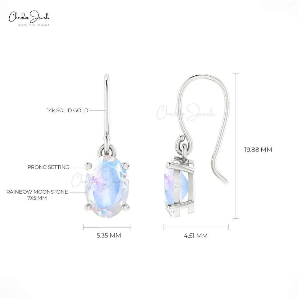 Dazzling Dangle & Drop Earrings Studded With Rainbow Moonstone 14k Yellow Gold 7x5mm Oval Gemstone Dainty Earring Fast Shipping