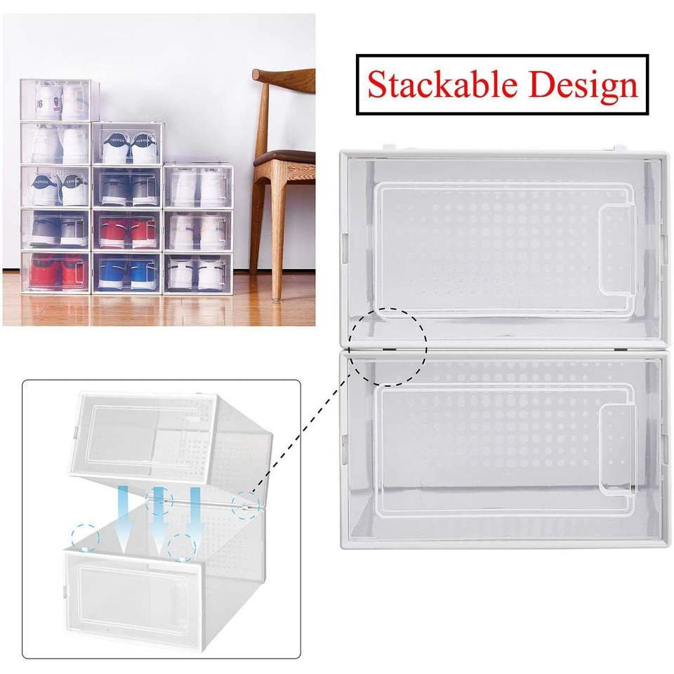 Db 8 Pack White Foldable Shoe Box Clear Stackable Storage Bins 35L Capacity With Lid For Shoe Storage Organization