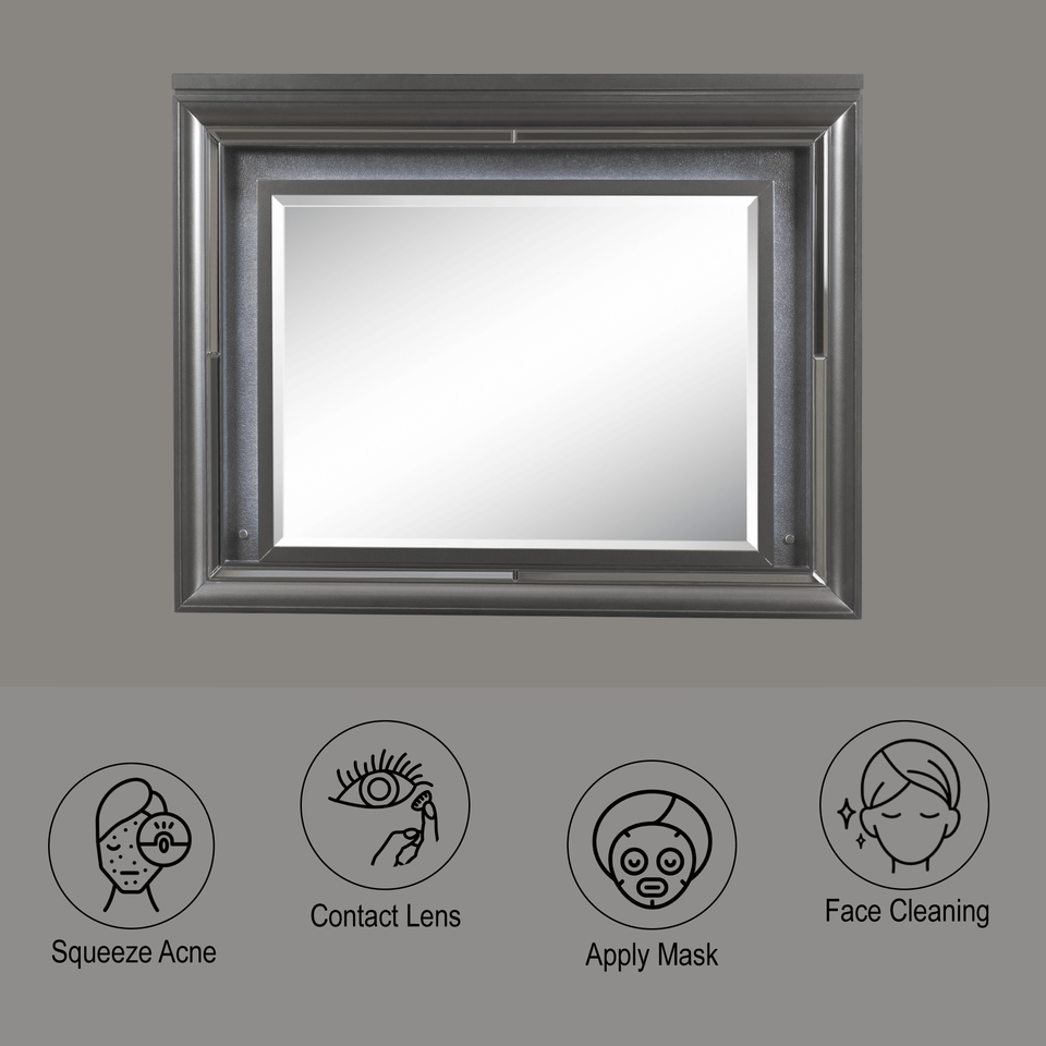 Db Sawyer Led Mirror Square Metallic Gray Wall Mounted Touch Switch Bathroom Use Modern Design