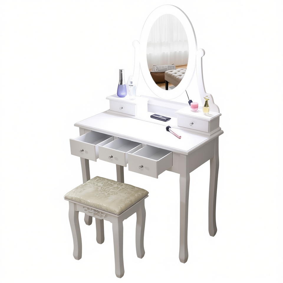 Db Vanity Table Set With Mirror 5 Drawers Storage White Traditional Design For Bedroom Makeup Dressing