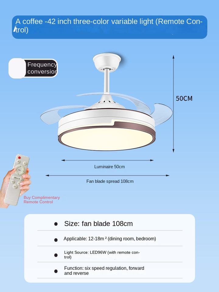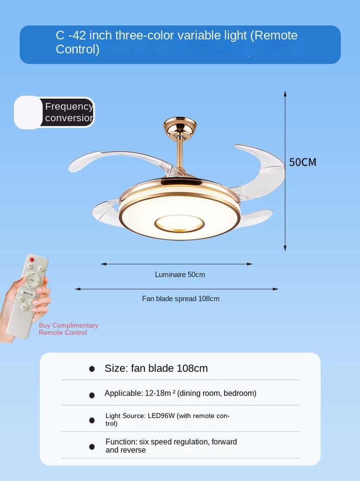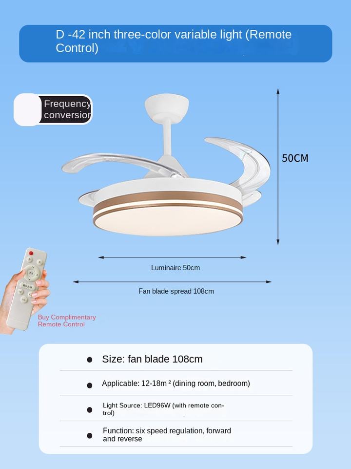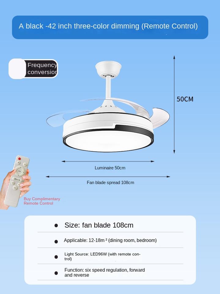 Foldable, With Light, Energy Saving, BLDC Motor, Reversible Airflow, Quiet Design, Air Purification Function, Remote Control
