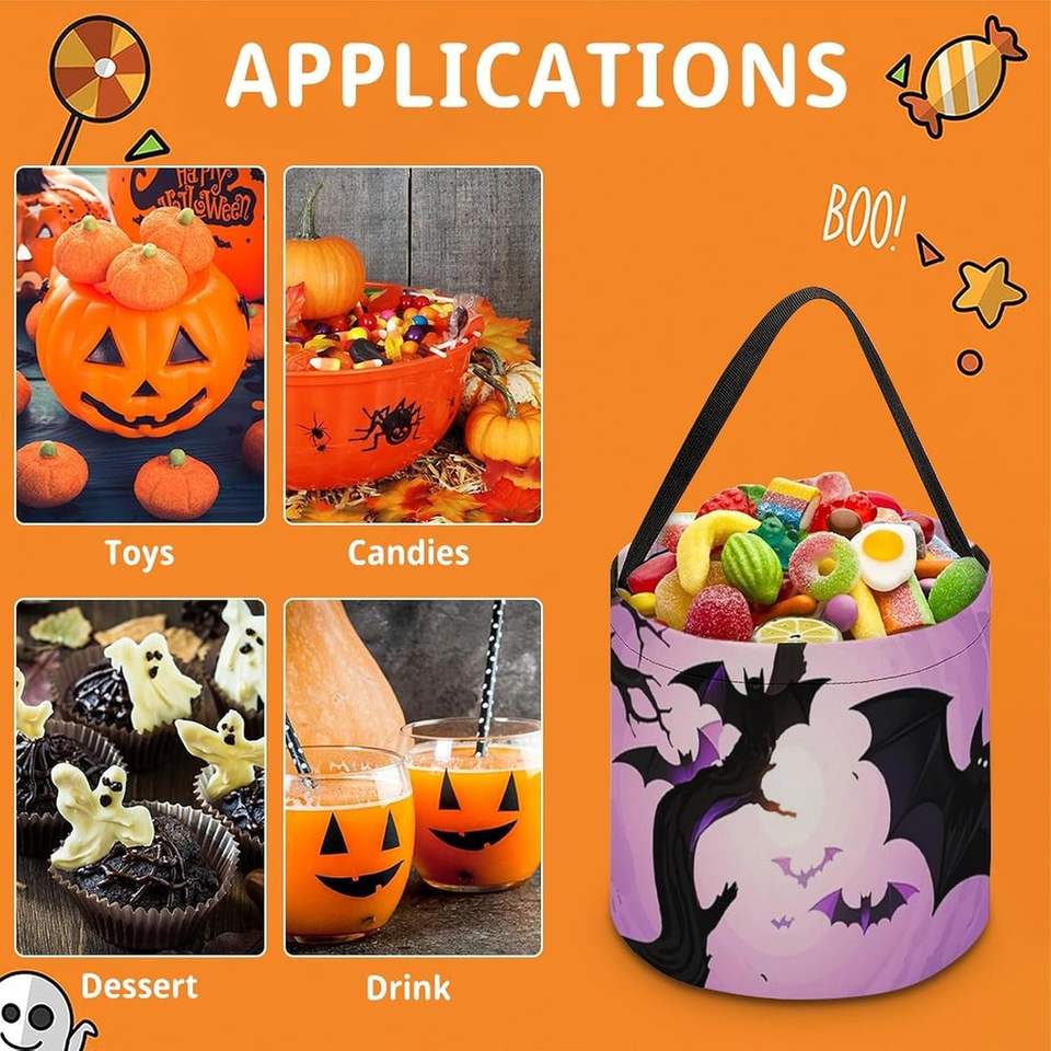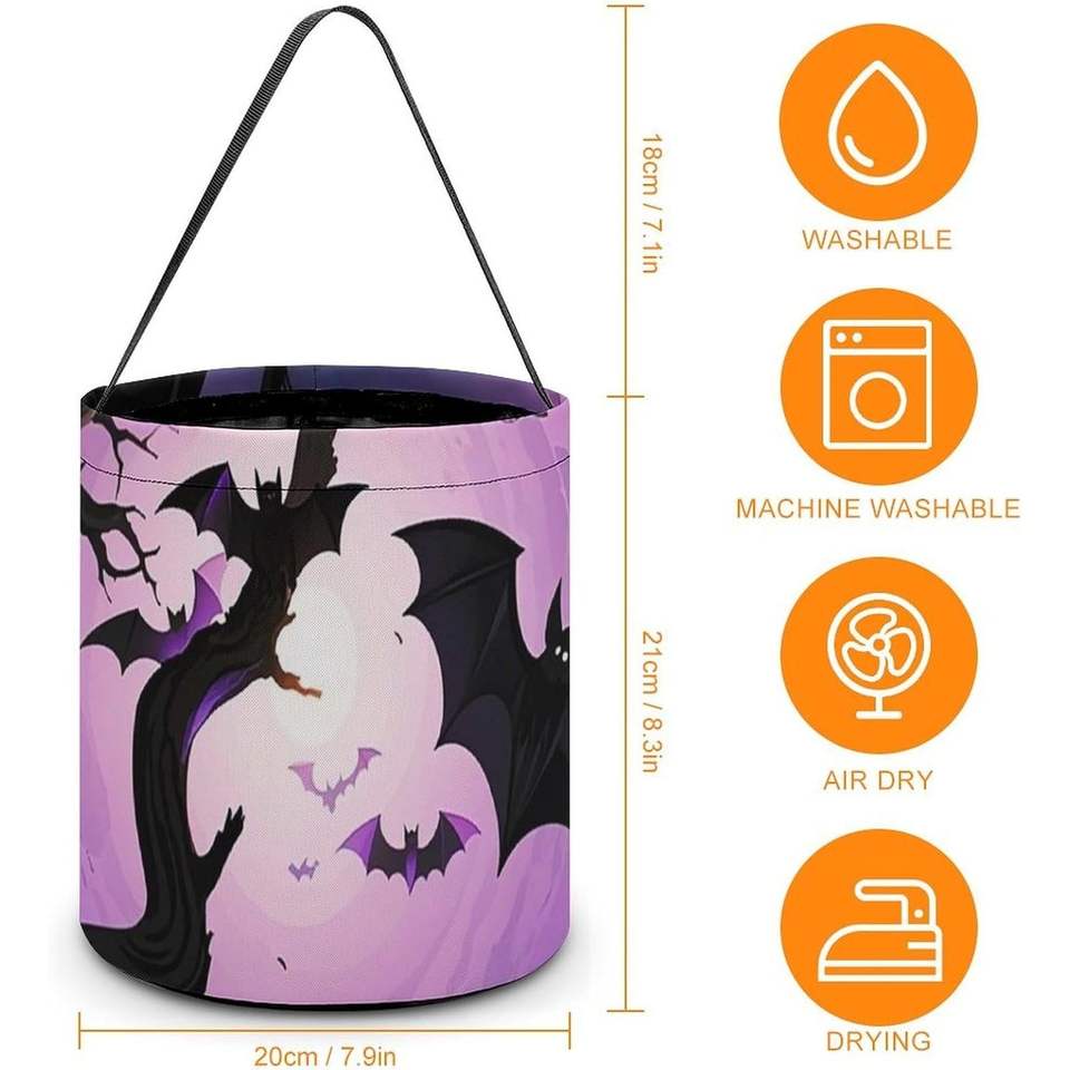 Dead Wood Crow Halloween Goodie Candy Bags Reusable Trick-or-Treat Tote Bucket with Handle Large Snack Baggie Treats Made China