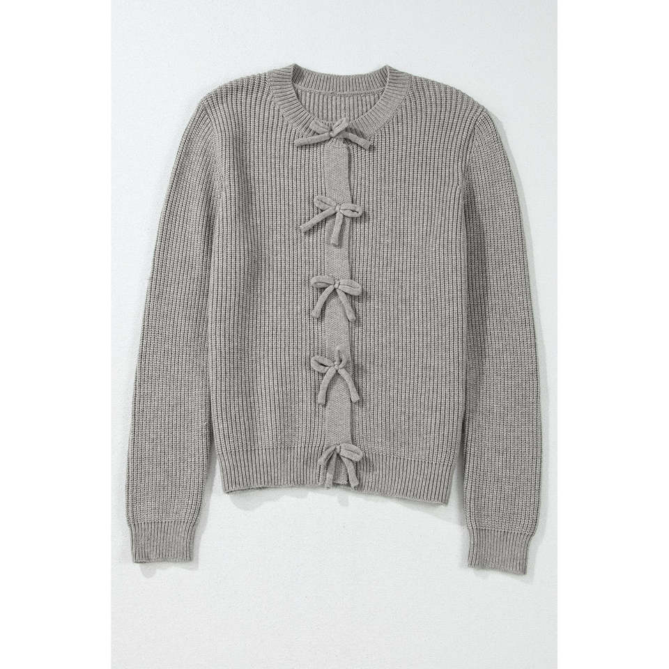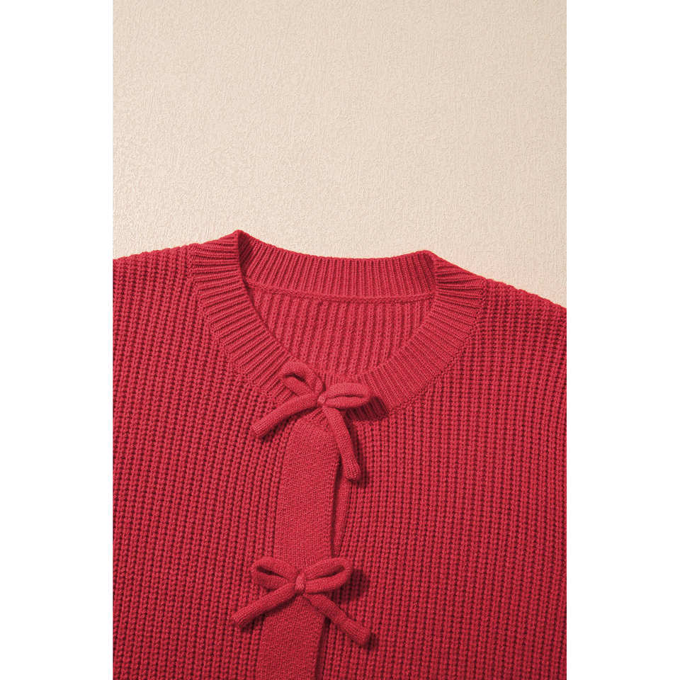 Dear-Lover Wholesale Us Warehouse Women Fiery Red Ribbed Knit Bow Front Buttoned Cardigan