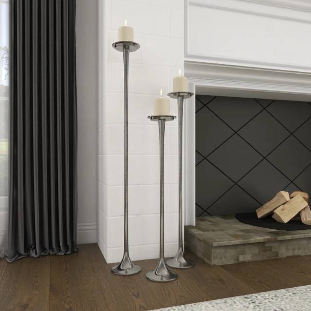 Dec Mode Silver Aluminum Tall Candle Holder Modern Aluminum Tabletop Langley Street or Deco Aluminum Tall Candle Holder