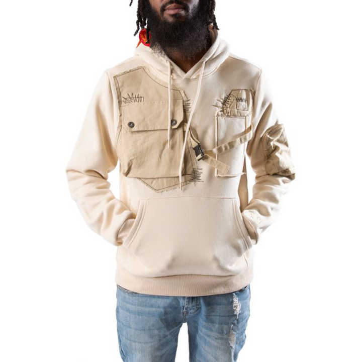 Dec Oem Wholesale Slim Fit Hoodies Unisex Corded Weave Patchwork Cargo Pockets Beige Plain Hoodie DDP Shipping