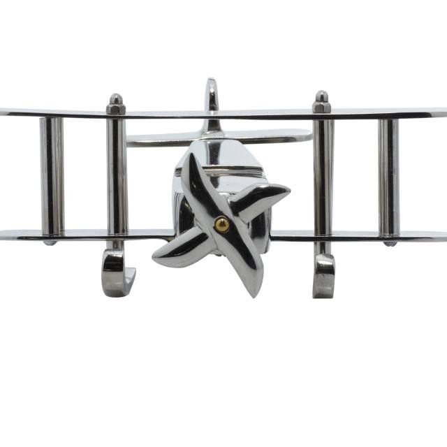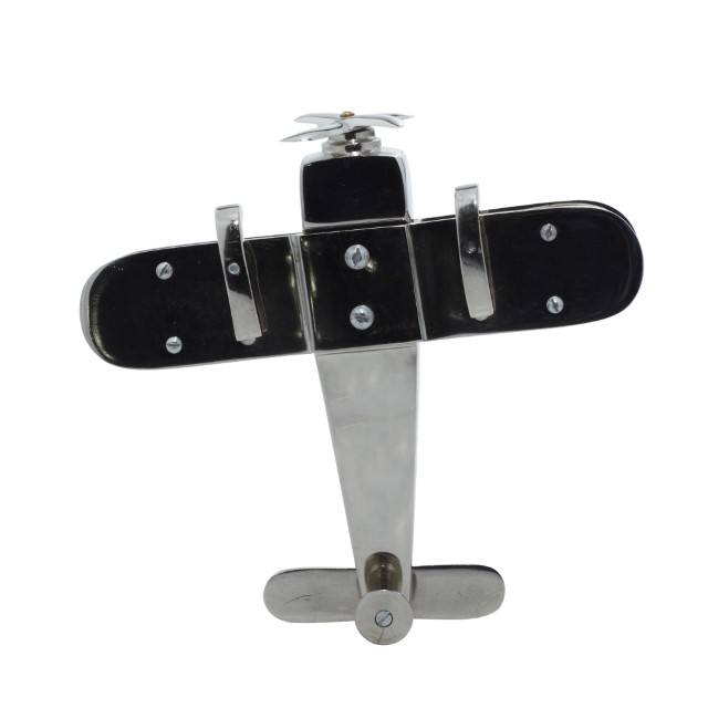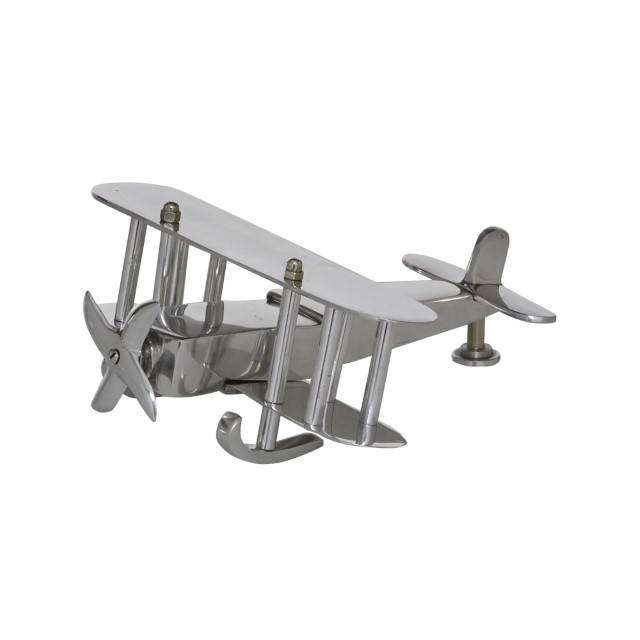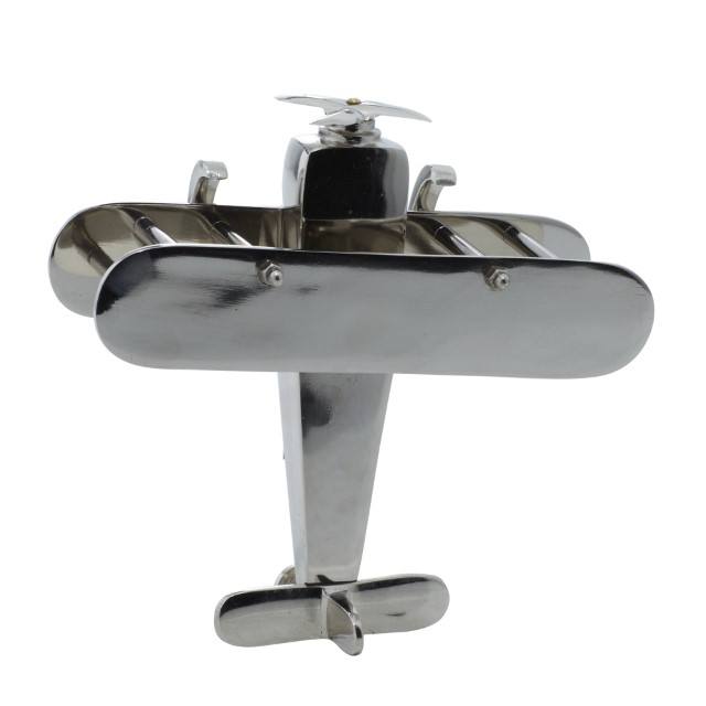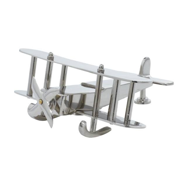 DecMode Modern Sculpture-Aluminum Plane Silver Classic Biplane Airplane Metal Art Home Decorative Piece