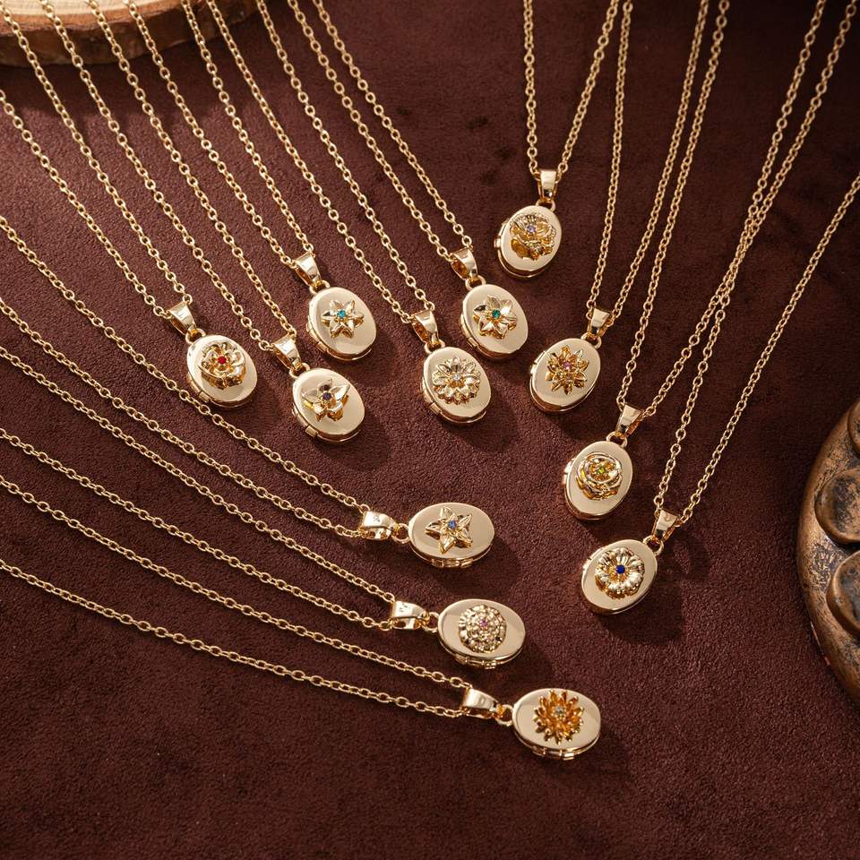 December Birth Flower Photo Locket Necklace Oval Birthstone Frame Pendant Mother Day Keepsake Gift Family Memorial Jewelry