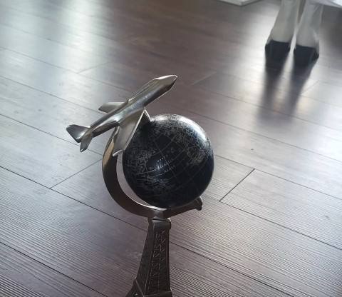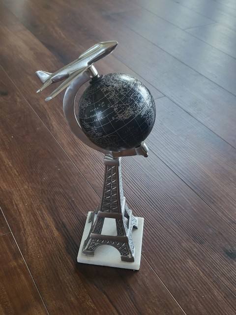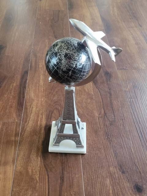 Deco Aluminum Airplane World Map Globe Sculpture Eiffel Tower Base Decorative Figurine Silver Black Airplane Model Ornament