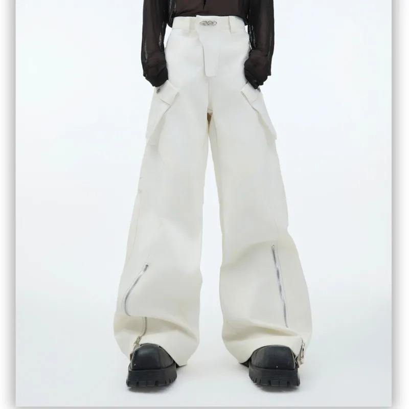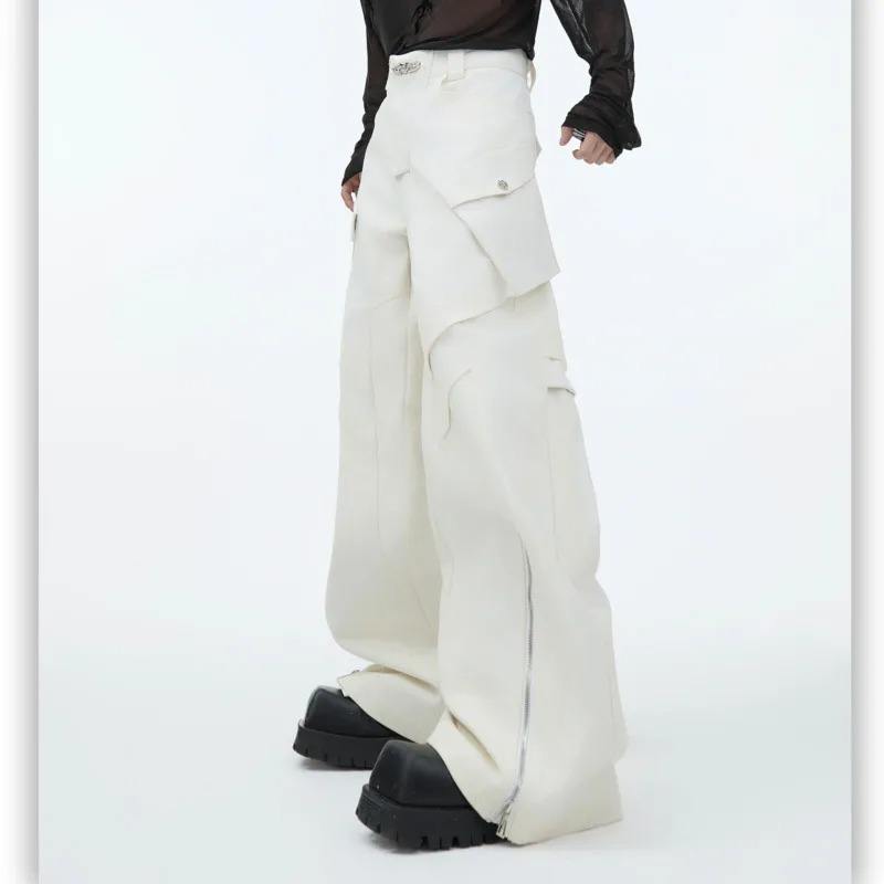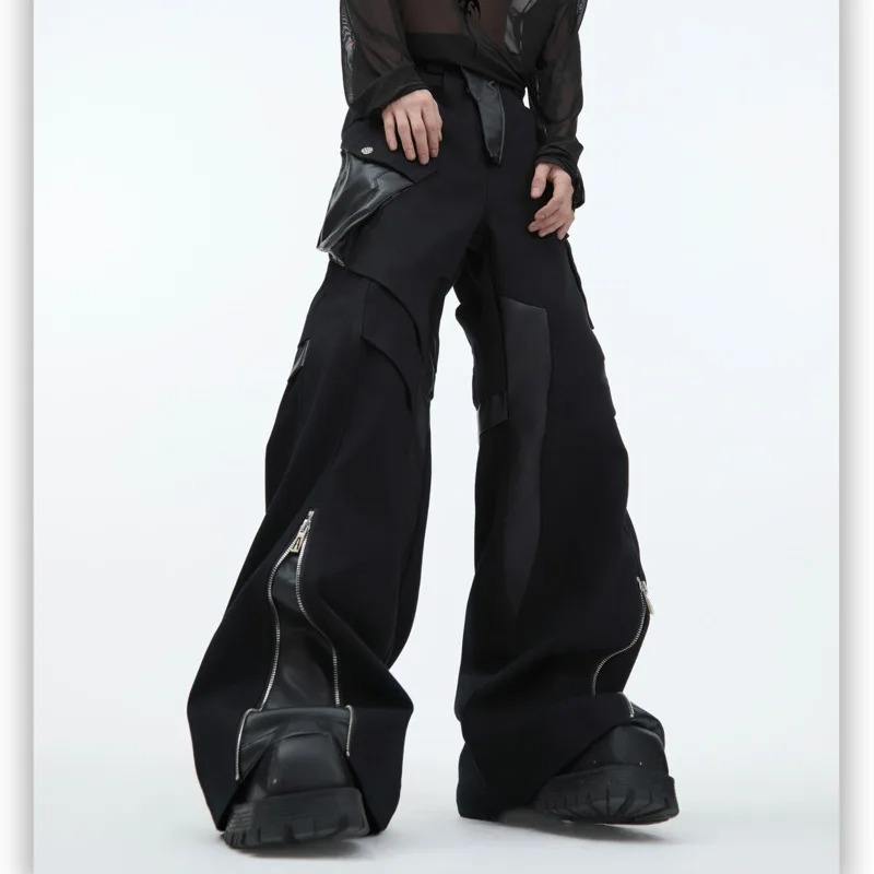 Deconstruction PU Leather Pants Contrasting Splicing Loose Straight Leg 2024 Patchwork Casual Male Trousers 24F9999