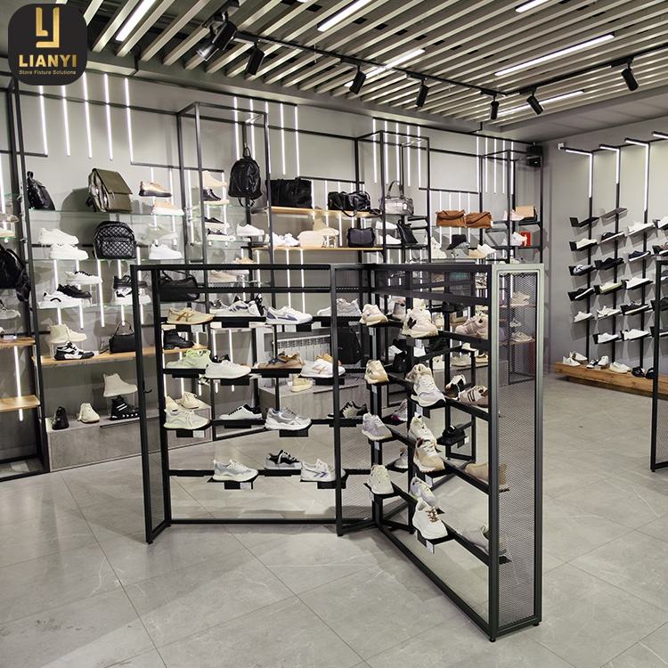 Decoration Wooden Shoes Display Showcase Customized High-end Creative Shoe Specialty Store Shelves Led Wall Shoes Racks