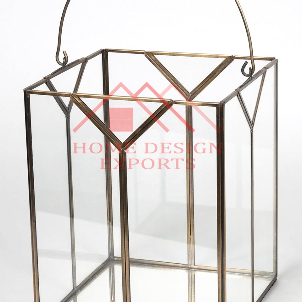 Decorations Modern Metal Candle Glass Lantern for Sale Best Seller Piece Glass Tabletop Lantern Set for Indoor and Outdoor