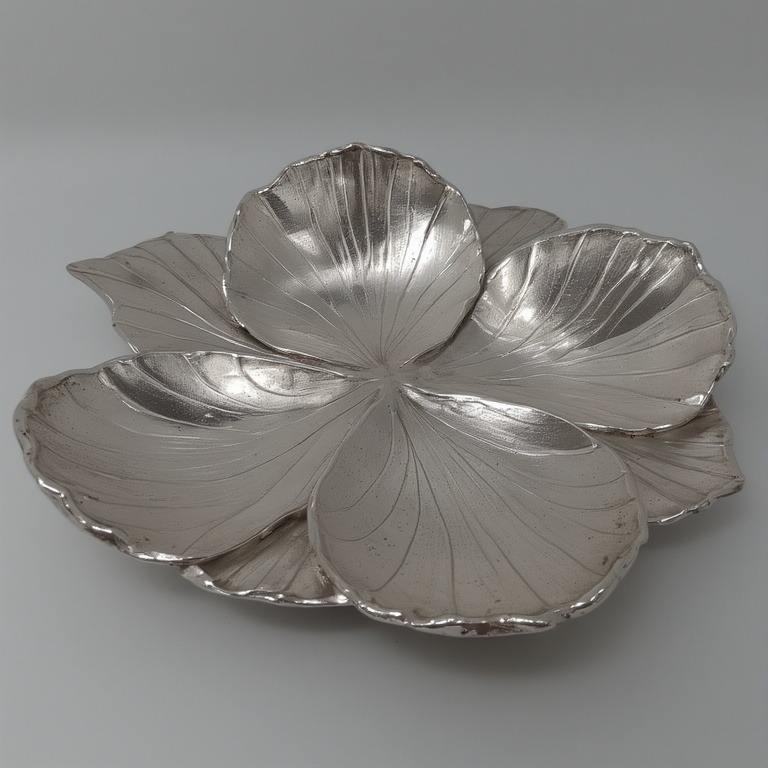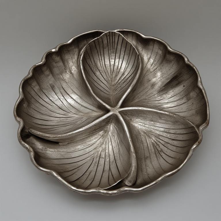 Decorative Aluminium Dry Fruit Server Featuring Three Interconnected Leaf Bowls In Antique Gold Finish For Dining Interiors.