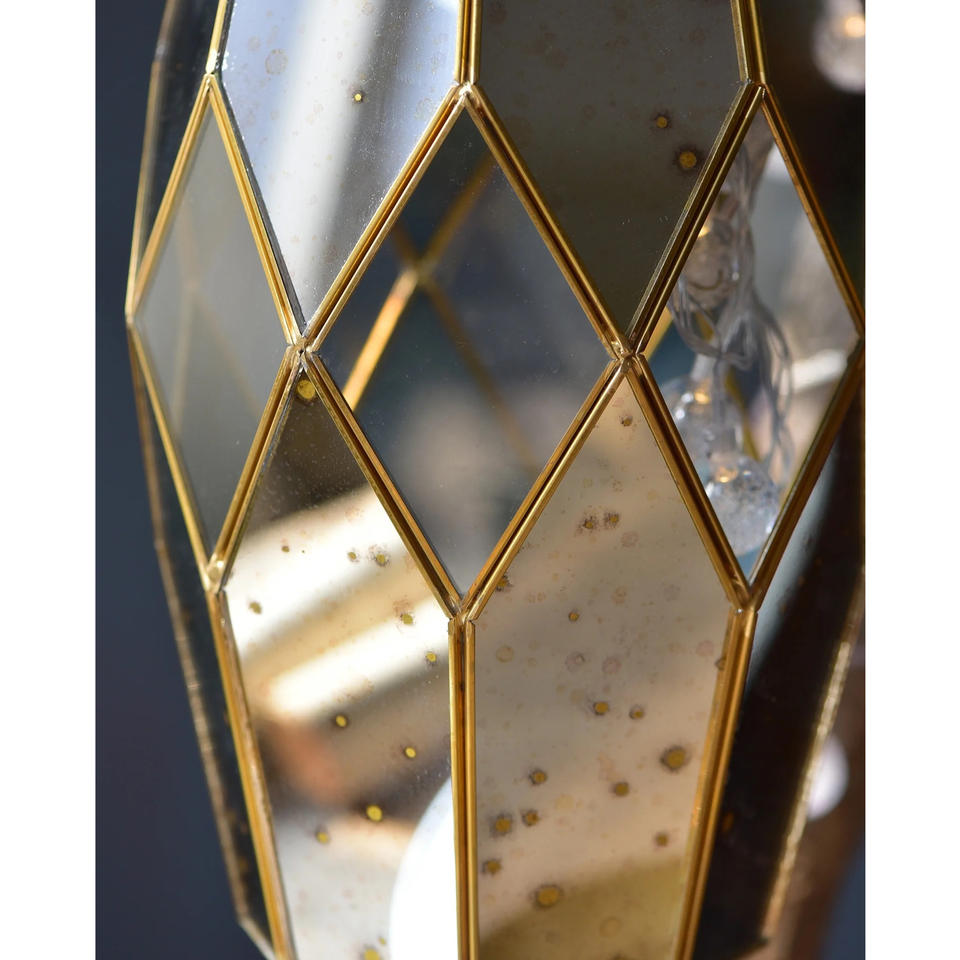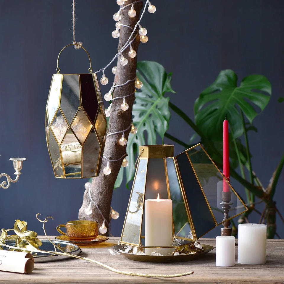 Popular Design Antique Mercury Glass Hexagon Candle Pillar Holder Lantern in Gold Brass Frame for Hanging and Floor Decorations