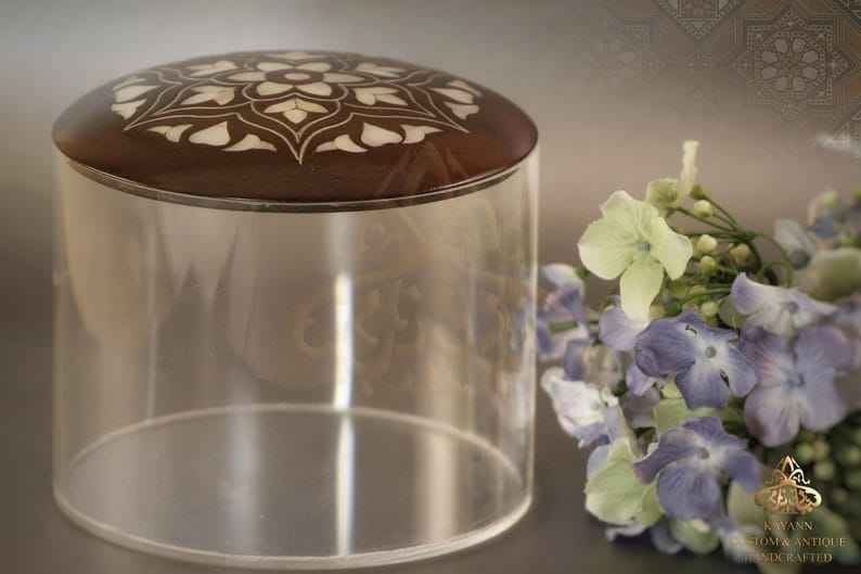 Decorative Arabic Party Favor Box Weddings Celebrations Home Styling Premium Acrylic Candy & Nut Jar with Mother of Pearl Lid