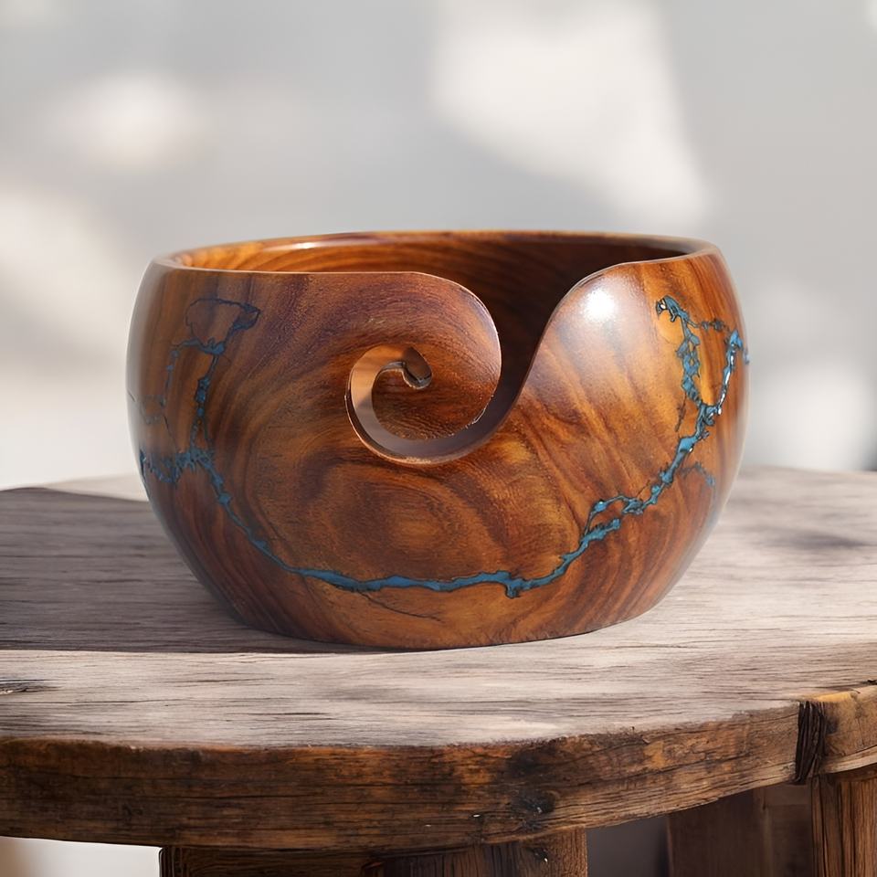Decorative Bamboo Yarn Storage Bowl for Knitting Crochet Home Needlework Resin Yarn Bowl Holder